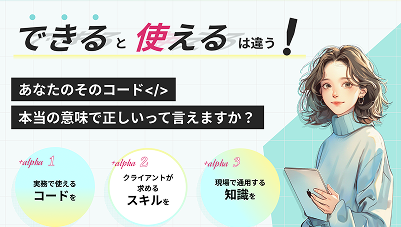 現場で“使えるスキル”を実践的に身につける、コーディング特化型のメンターコミュニティです。初学者〜上級者までいろんなレベルの人が「できるようになる」ために必要なサポートを、実務視点で提供しています。制作スキルを身につけたい方、フリーランスを目指したい方に最適な少人数制の学びの場です。